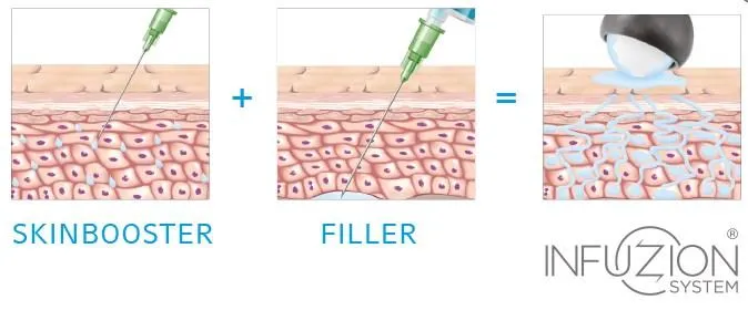 INFUZION is een innovatieve en niet-invasieve antiverouderingsbehandeling die het zeer effectieve actieve ingrediënt hyaluronzuur zachtjes diep in de huidcellen brengt. Het gepatenteerde systeem van Infuzion geeft de huid een jongere uitstraling - zonder naalden, zonder druk, zonder pijn en zonder downtime.